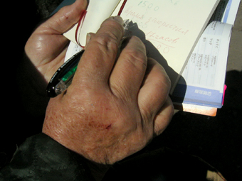 市場で会ったおばあさんとはロシア語会話集を頼りに筆談しました。 おばあさんの指がかわいかったので隠し撮り。