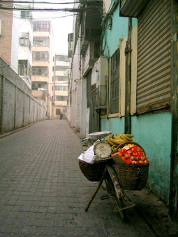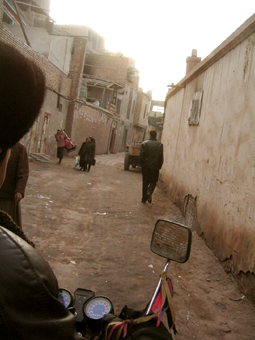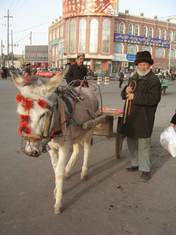 ウイグルでは毎日のようにバザールに通いました。 バザールへの足は荷台の付いたバイクタクシーのような乗り物