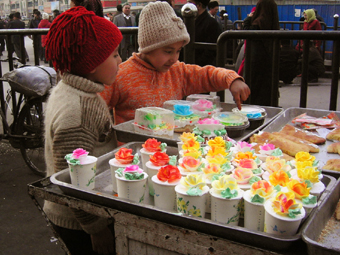 バザールで使ったウイグル語は、「クルッパカイ(見せて)」「カンチプル(いくら?)」「アルザンビレムシズ(まけて)」「ラフマット(ありがとう)」「ホッシュ!(さよなら)」のみでしたが、いろんな物が買えました。