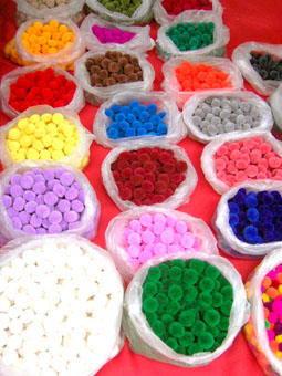 編み物しながら出来た物を並べています。 通るたびに新作が並んでました。