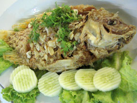 一番おいしかったのはカオマンカイという鶏ごはんと、魚の丸揚げ。