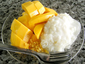 マンゴーごはん。 もち米+マンゴー+ココナッツミルクの組み合わせ