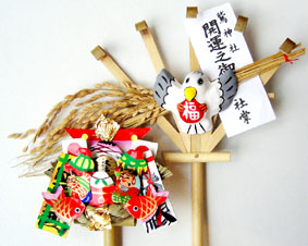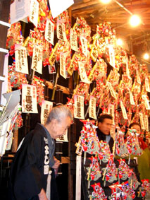 大きいのから小さいのまで、いろんな熊手があって迷います。 nicoの熊手はこちらのお店で購入。
